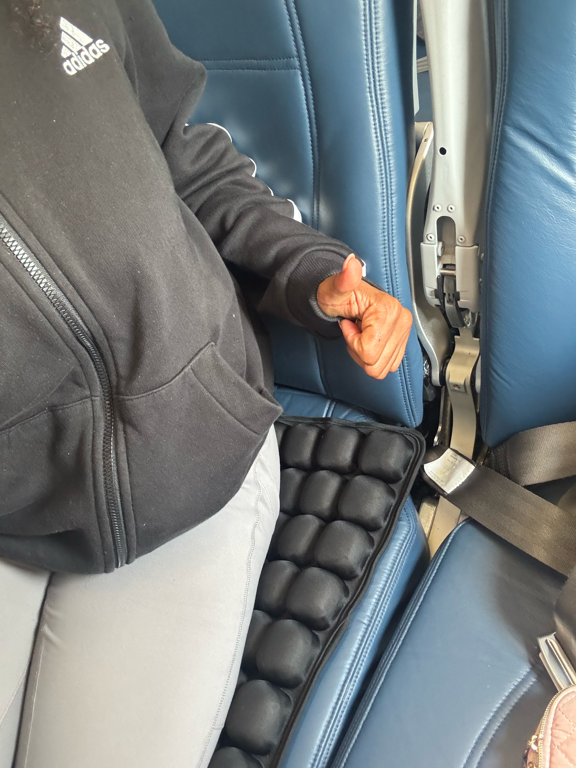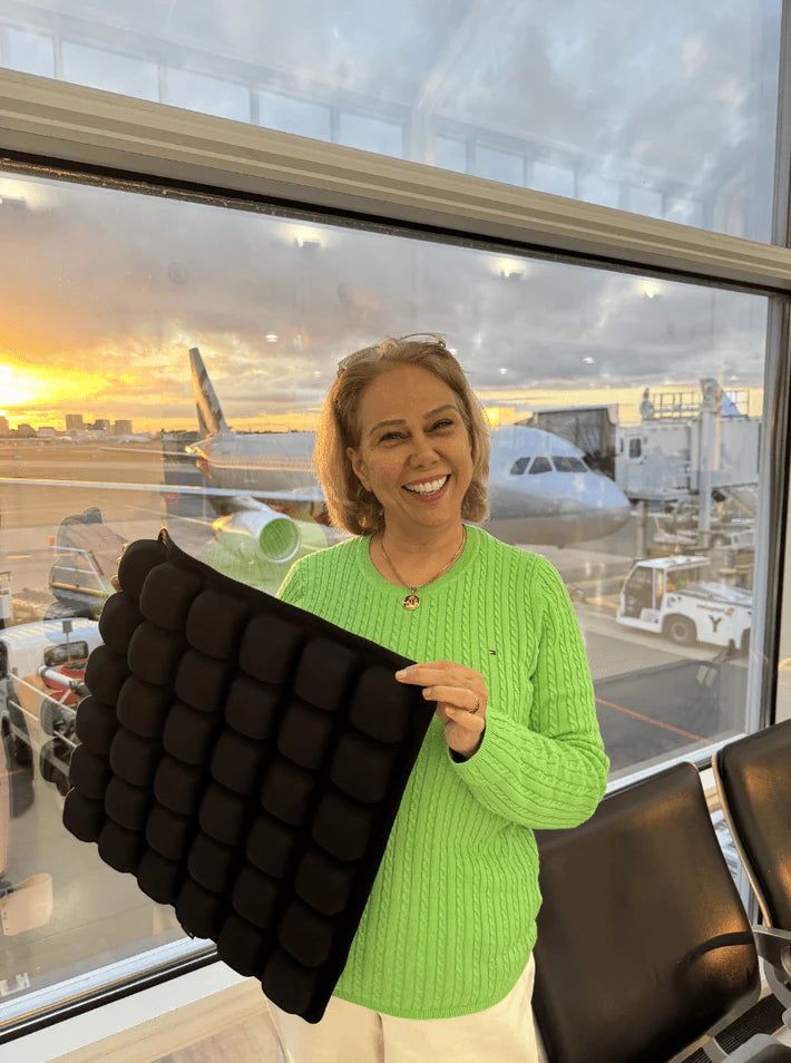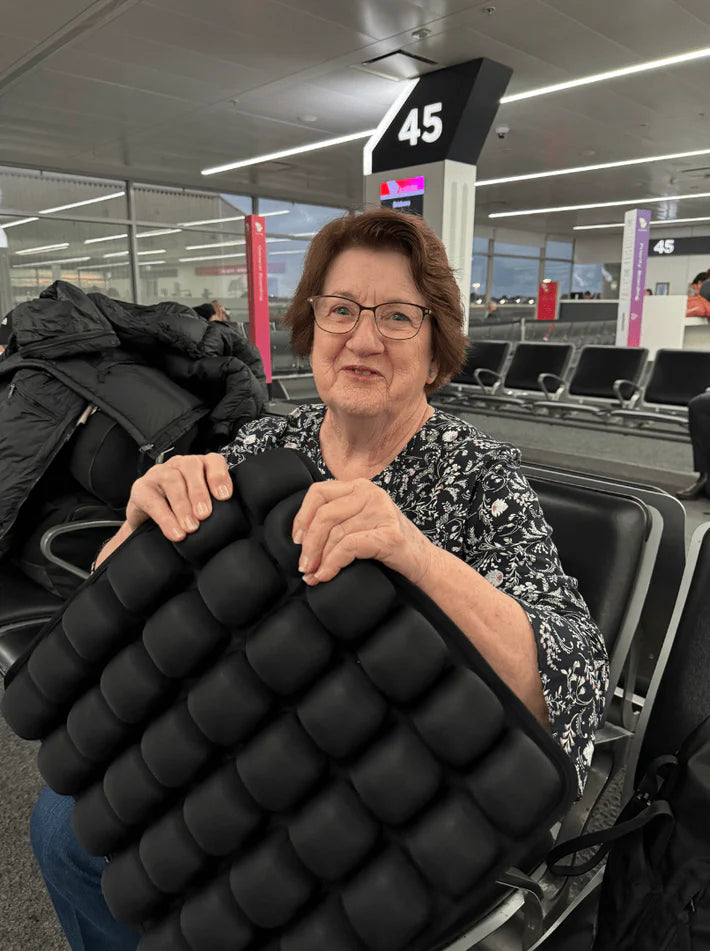 ‘I used to find that pain in my tailbone ruined long flights for me. This cushion has changed everything: no pain, no slipping, and perfect support from start to finish.’